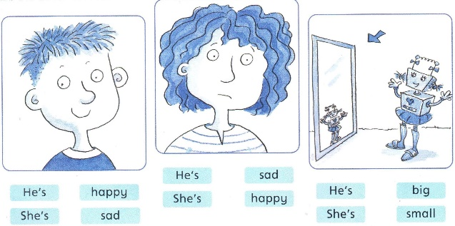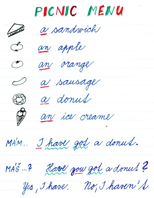 * ANGLIČTINA – PS str. 35 dole – věty doplň podle obrázku. Na začátku věty si podtrhni zájmeno ona (she) červeně a zájmeno on (he) modře. Věty si na závěr přečti 2x nahlas – NUTNÉ! Opakuji, že spojení He´s got je zkráceno z He has got.