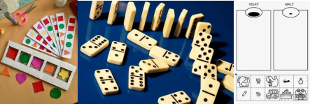 Černý Petr, Pexeso, Obrázkové domino a řada dalších her, při kterých si dítě musí všímat drobných detailů, rozlišovat tvary, hledat rozdíly a podobnosti.